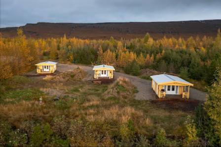 Die Hütten liegen ca. 8km von Egilstadir entfernt, wo man auch gut essen kann.